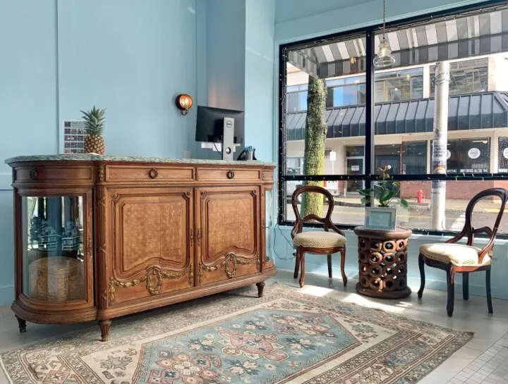 Located near the Club House, the Pool House offers recreational amenities in addition to golfing. To serve members of all ages and improve functionality of the Pool House, SV Design designed an ADA compliant renovation with a new reception desk, slip resistant flooring throughout, shiplap wall paneling, custom built-in storage, and a new family-accessible bathroom. Fun accents like oversized beach-ball like light fixtures and a bright color scheme create a fun, yet sophisticated feeling for warm summer days by the pool.